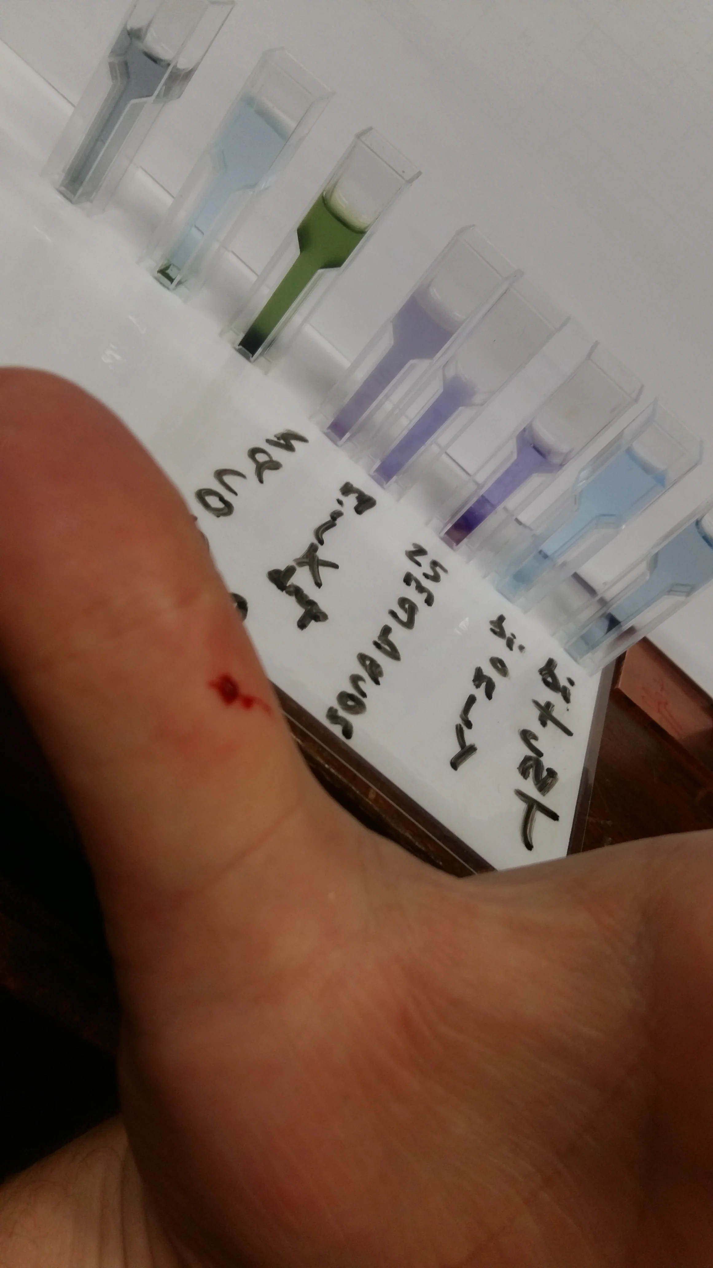 No, I didn’t heroically prick my finger to see if it would turn Biuret reagent purple, this was a fortuitously timed papercut!